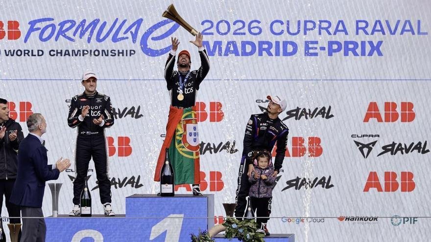 El portugués Antonio Félix da Costa (Jaguar) se proclamó este sábado en el primer ganador de la historia de un e-Prix de Fórmula en Madrid, que se estrenaba esta temporada 12 en el campeonato, en una carrera en la que el piloto español Pepe Martí (Cupra Kiro) finalizó en novena, sumando dos puntos tras liderar tres vueltas en la primera parte de la carrera. El portugués Antonio Félix da Costa (Jaguar) se proclamó este sábado en el primer ganador de la historia de un e-Prix de Fórmula en Madrid, que se estrenaba esta temporada 12 en el campeonato, en una carrera en la que el piloto español Pepe Martí (Cupra Kiro) finalizó en novena, sumando dos puntos tras liderar tres vueltas en la primera parte de la carrera.